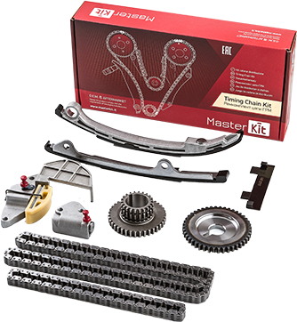 Комплекты цепей на 100 % идентичны оригинальным деталям и не уступают в качестве. Полная комплектность набора MASTER KIT позволяет выполнить комплексную замену цепи ГРМ, что обеспечивает долговременную и эффективную работу агрегата.